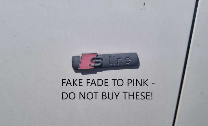 Do not buy cheap ebay and aliexpress parts as they go pink after 6 months. You buy cheap you buy twice! These are genuine gloss black Audi RS3 badges that should last forever.