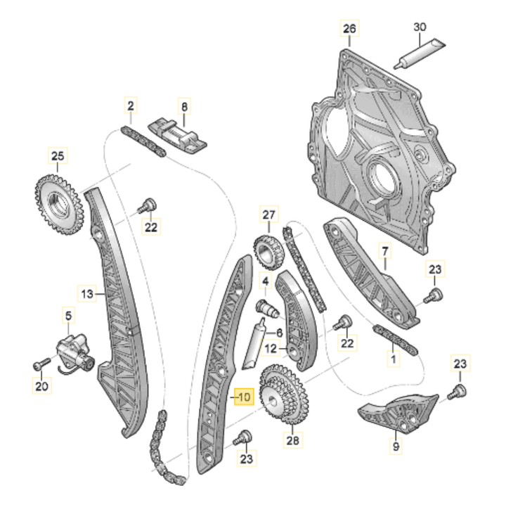 Right rail on the chain that connects to the camshaft. Fits EA888.3 2.0T.